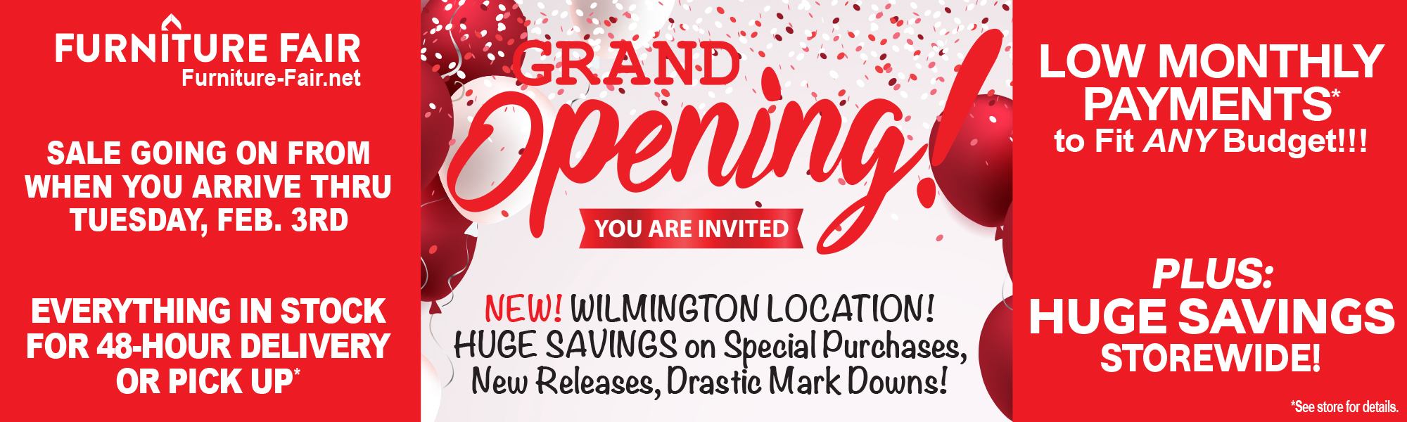 Furniture Fair is eastern North Carolina's largest furniture, mattress, and appliance dealer with stores in Jacksonville, Greenville, Goldsboro, New Bern, Rocky Mount, and Kinston. For over 74 years we’ve been proudly serving our customers' needs. We offer many credit options including special financing with approved credit, to "in-house" installment accounts. When you find what you’re looking for at Furniture Fair, we will find a way to help you afford it!