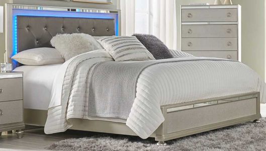 Complete your bedroom idea with this Queen upholstered bed from Lifestyle. Shown in a silver finish, give this bed an alluring appeal. With its beautiful design, this bed will make a statement in your bedroom.Read More