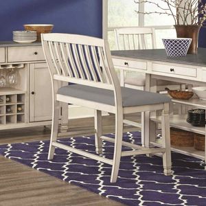 The slat backrest and saber legs of this upholstered bench from the Crafton collection make it a great fit for any casual dining room. The Crafton collection features matching counter height dining table, stools, and server.Read More