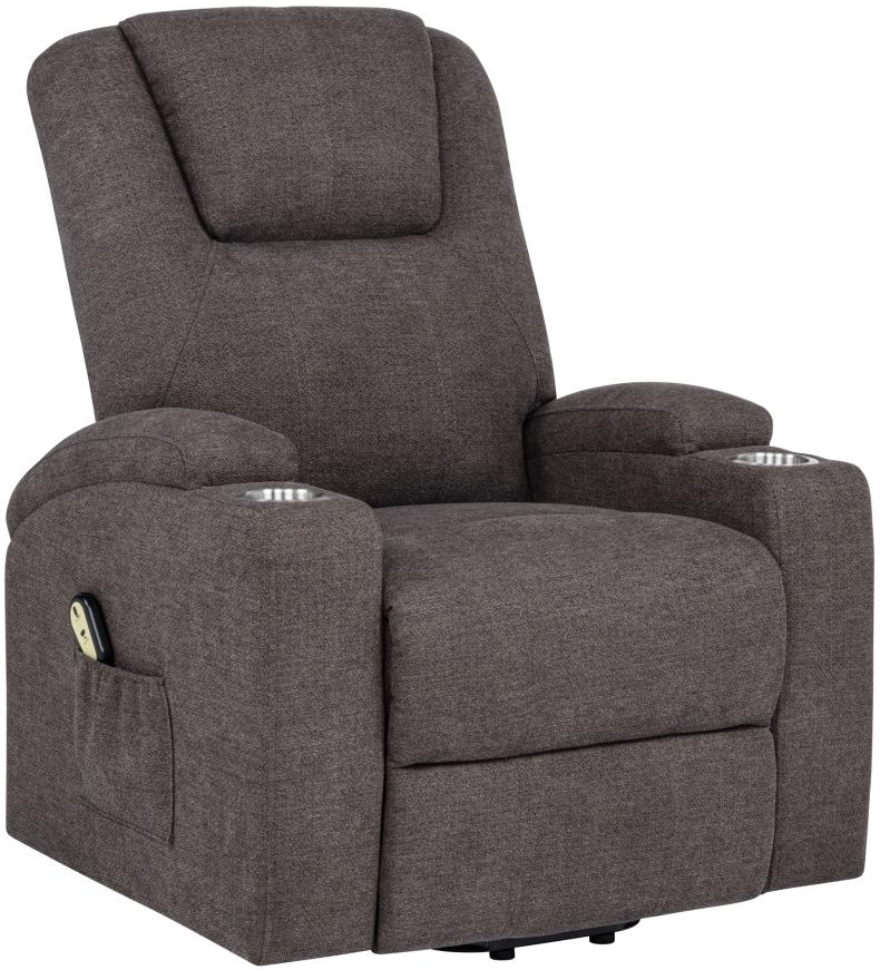 Power lift massage chair in brown chenille offers wired remote-controlled recline and lift