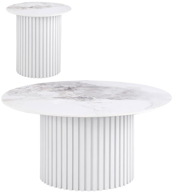 The Rowena 2-piece Coffee and End Table Set in White Faux Marble offers a sophisticated look with its elegant faux marble tops and sturdy frame. This set provides a stylish and functional addition to any living space, perfect for holding decor or everyday essentials.Read More