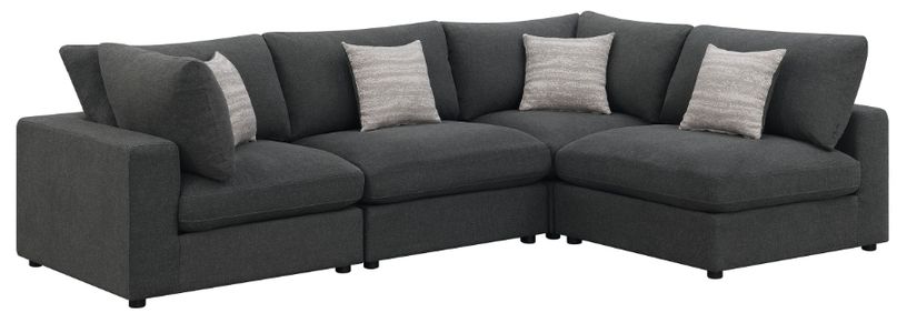 This contemporary four-piece sectional offers a versatile L-shape design that works with countless living room arrangements. Wrapped in a linen-like fabric, this modular sectional offers all the comfort one needs to kick back and relax. Reversible pillows and jacquard accent pillows beckon you to sink in for a midday nap or chat with guestsRead More