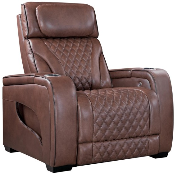The Corinthian Furniture Como Brown Power Recliner with Power Headrest, Massage, and Light offers a relaxing and luxurious experience. Upholstered in rich brown fabric, it features power reclining, adjustable headrests, built-in massage functions, and soothing ambient lighting. This recliner combines comfort and modern technology for an enhanced seating experience in any room.Read More