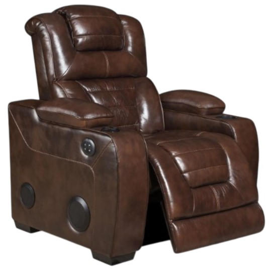 The Corinthian Furniture Luke Brown Power Recliner with Power Headrest and Bluetooth Speaker combines comfort and modern technology. Upholstered in rich brown fabric, it features power reclining, an adjustable power headrest, and built-in Bluetooth speakers for an enhanced audio experience. Perfect for ultimate relaxation and entertainment in any space.Read More