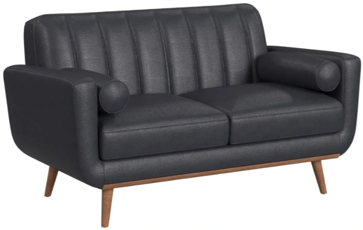 The Horizon loveseat with wood front and 2 six inch bolster pillows is built with a frame fully upholstered in quality faux leather. Comfortable foam cushioning, decorative tufting on the backrest, and track arms forming sleek and modern lines, while an exposed front rail and wood legs highlight excellent craftsmanship.Read More