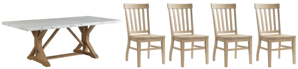 Bring refined style and warm design to your dining area with the Lakeview Rectangle Dining collection. Constructed of wood solids, accented with a natural marble top, this set offers an air of elegance and sophistication while maintaining true functionality.Read More