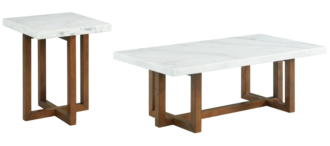 The Morris 2-piece occasional table set is going to look fantastic in your home! This dynamic duo includes a coffee table and end table. These accent tables features white, marble table tops that pairs beautifully with the warm, chestnut table base finish.Read More