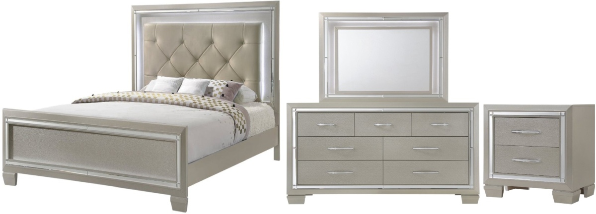 The glamorous Platinum storage bedroom set is dressed in a fashionable champagne finish and adorned with a chic mirror trim.Read More