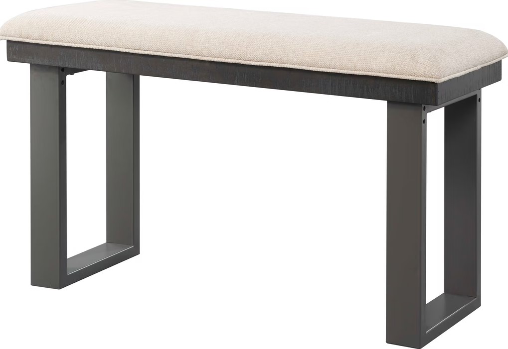 Complete your dining room design with this Sawyer Bench from Elements International. Shown in Cream fabric and Smokey Dark Ash finish on the legs and frame. This piece will definitely add style to your dining room.Read More