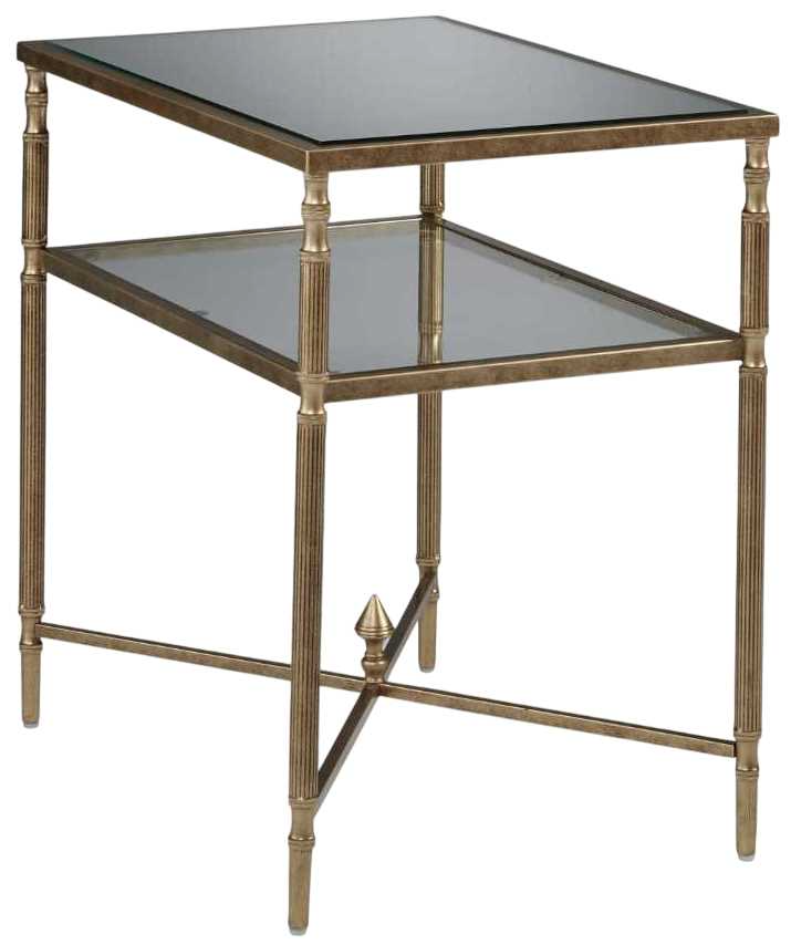 This end table gives traditional design a wonderful sense of relevance. Its details, which include embellished legs and a stretcher with a decorative center finial, are timeless classics. The aged goldtone coloration is the essence of relaxed elegance. An underlying shelf adds style, substance and functionality.Read More