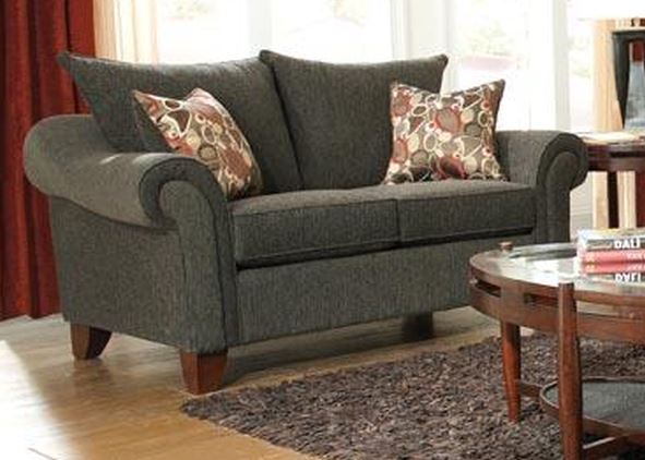 Flair by Minhas Loveseat with dark wooden legs and rolled armsRead More
