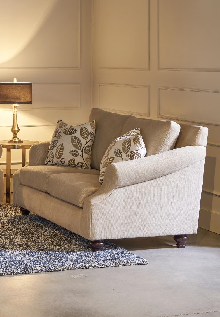 Flair by Minhas Loveseat with dark bun legs and roll armRead More