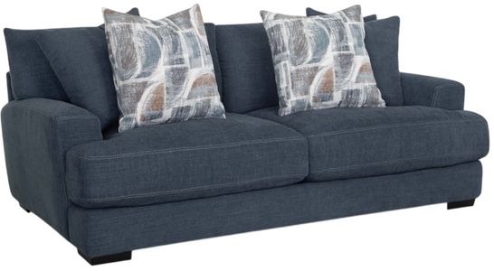 Elevate your living space with the timeless charm of the 809 Camden Collection. This beautifully crafted set includes a sofa, loveseat, chair-and-a-half, and matching ottoman, all upholstered in a durable blue-gray, denim-like fabric. Coordinating throw pillows come standard with the collection, adding a sophisticated touch to the overall look of the group.Read More