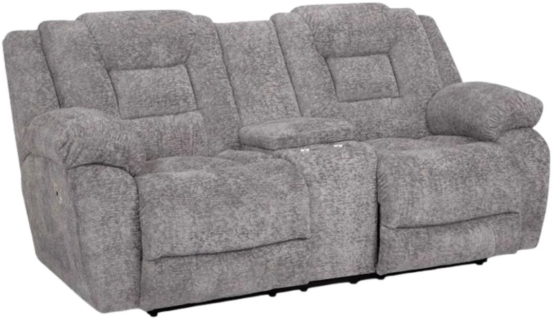 This power reclining console loveseat from Franklin brings a chic combination of comfort and style to your home. Shown in pilot ash color. Incorporate this into your rest area to give your space a refined touch.Read More