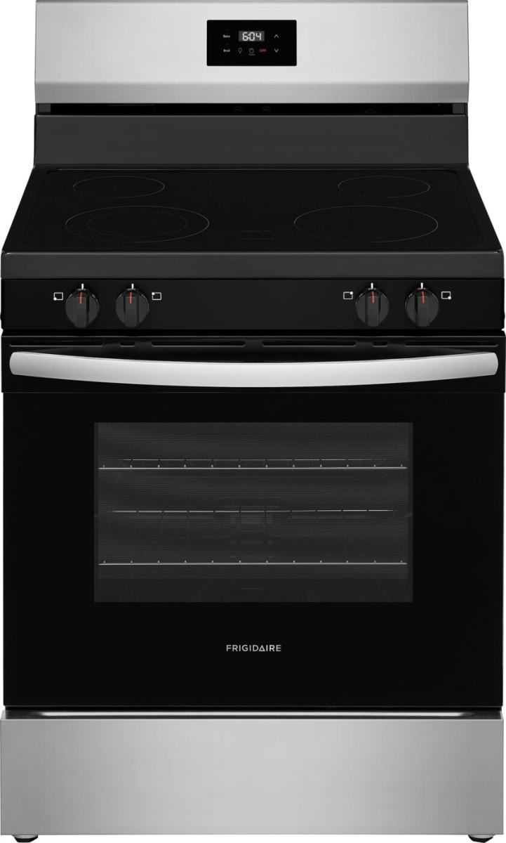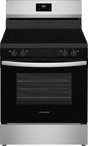 The Frigidaire 30'' Electric Range features a four burner cooktop that is designed to handle all of your cooking needs. Get meals on the table faster with the powerful 3,000-Watt Quick Boil Element. Enjoy the flexibility of our 2-in-1 Dual Expandable element that can accommodate both small and larger pot sizes. Cook more at once in the large, 5.3. Cu. Ft. Oven. Also features a sleek, modern edge-to-edge glass design that will look great in any kitchen.Read More