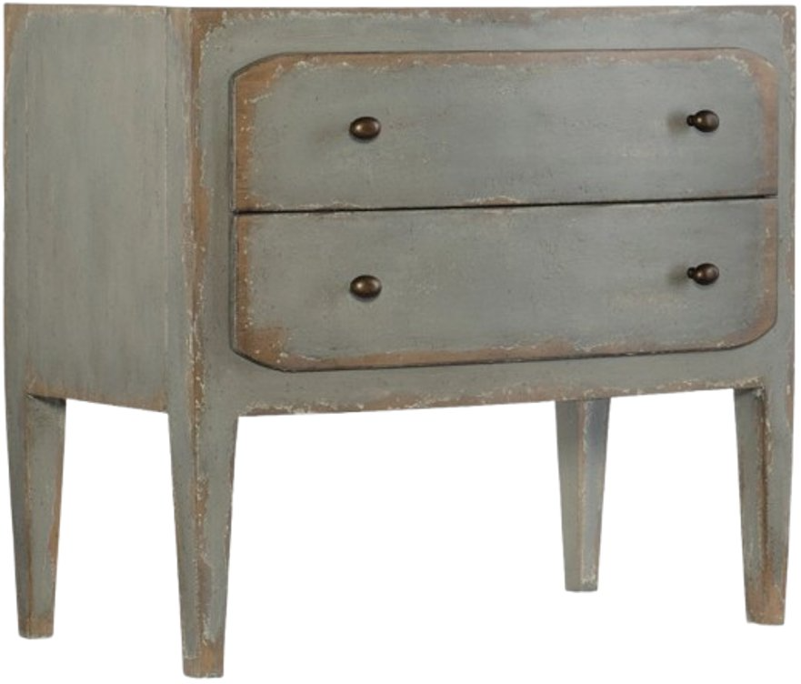 Rustic and romantic, the two-drawer Ciao Bella nightstand will bring a European farmhouse ambience to your bedroom retreat. Crafted of poplar and hardwood solids with maple veneer, the nightstand is finished in time worn gray, a layered and distressed finish that looks like it is aged gracefully through the decades.Read More