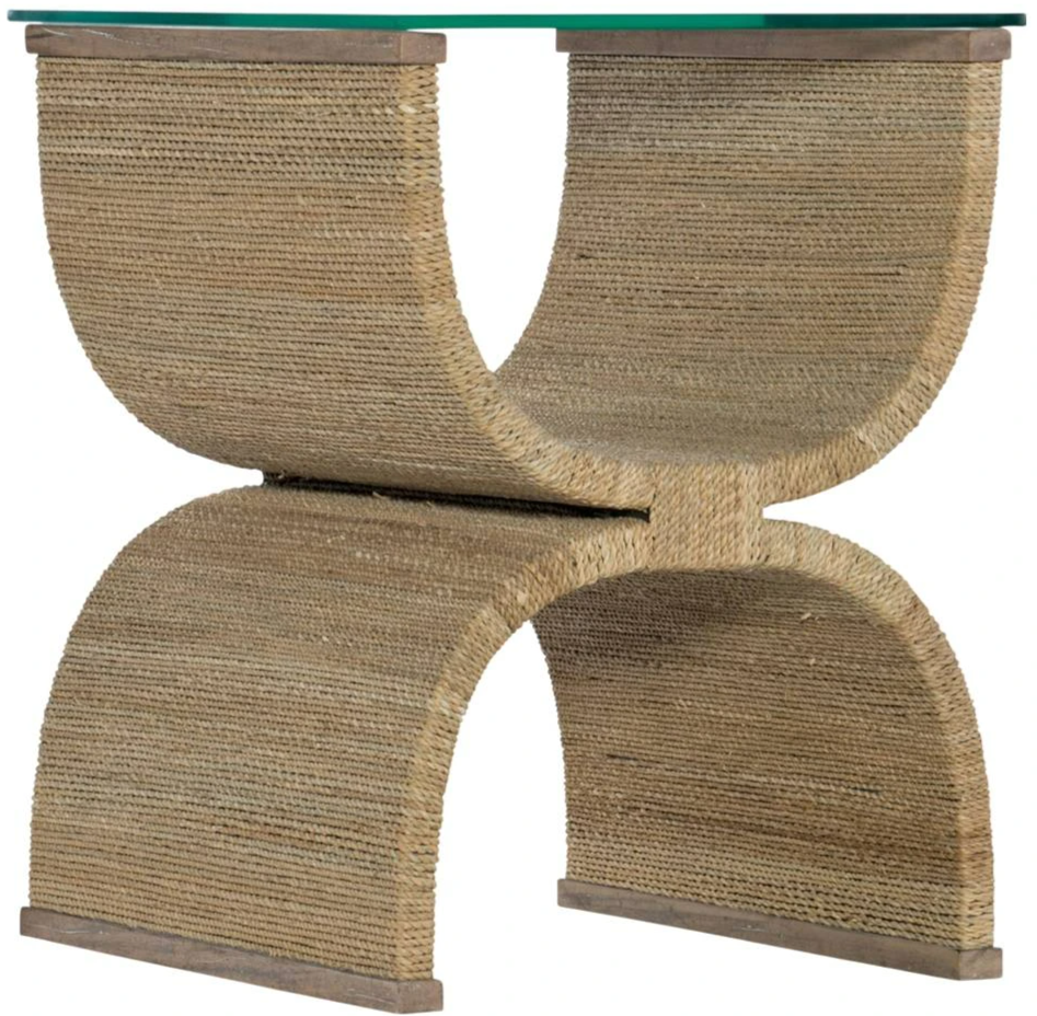 In stylish symmetry, the Lenny woven end table, crafted in an organic woven rope with a tempered glass top, is a bohemian beauty that will add whimsy and practicality to any chairside.Read More