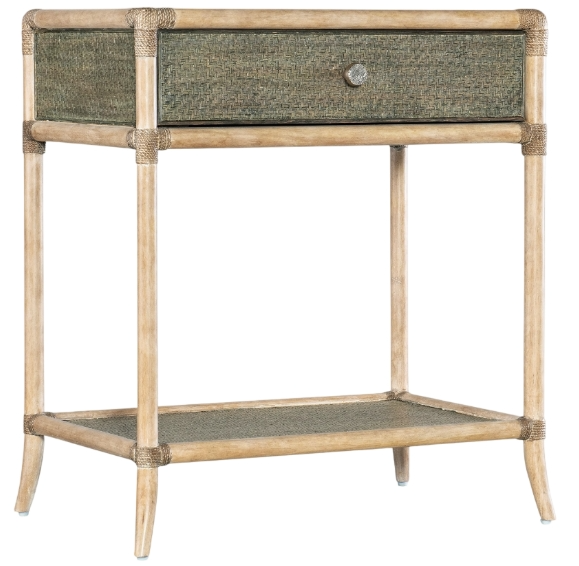 Inspired by tropical getaways, the two-tone Retreat pole rattan bedside table is a mixture of natural materials in a laid-back, versatile design. Crafted of maple veneers, raffia and rope, it features painted raffia on the top and shelf in a seagrass accent green, while the frame and legs are in the sand-colored dune finish.Read More