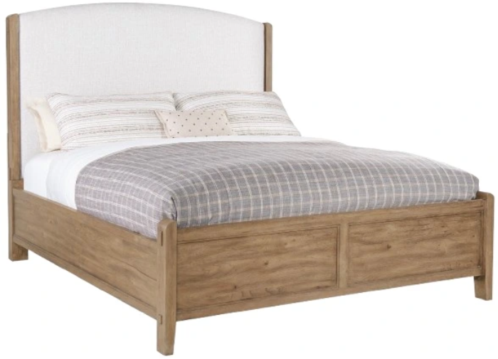 Embracing the rustic charm, laid-back aesthetic and craftsman architecture of the Napa Valley, the Vineyard Row California King bed is made of pecky hickory veneers with an upholstered headboard covered in white zin-colored fabric. Square-peg joinery on the footboard adds to the hand-crafted ambience. Includes the headboard, footboard and rails.Read More