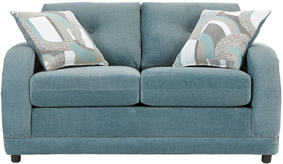 The Hughes Furniture® loveseat blends style with plush comfort. Upholstered in a bright, cruiser aquamarine fabric, it features a beautifully tufted back, padded arms, and a clean silhouette. With a hardwood frame, foam cushions, and easy-care finish, it offers both support and style, perfect for brightening up any living space.Read More