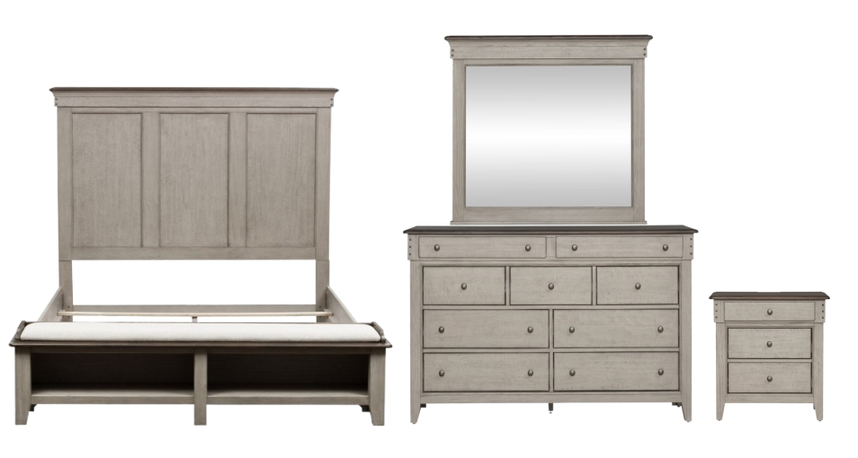 Create a relaxing retreat with the Ivy Hollow queen storage bed, dresser, mirror, and nightstand. Inviting and inspirational, Ivy Hollow offers the farmhouse look and design style that works for cottage or contemporary and is more about creating a look that we love.Read More
