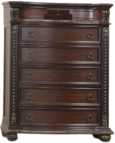 The Lifestyle Cherry 5-Drawer Chest embodies classic sophistication with its rich cherry finish. Featuring five spacious drawers, it provides ample storage for clothes and belongings. Crafted from durable materials, this chest blends timeless elegance with practicality, making it a stylish and functional addition to your bedroom decor.Read More