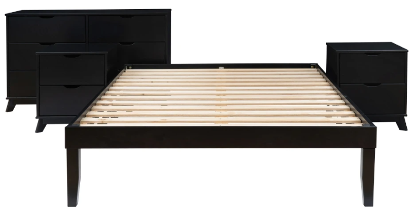 Elevate your bedroom with the perfect blend of style and function! This chic full size platform bed, dresser and nightstand set brings a touch of contemporary sophistication to your space while keeping it warm and inviting. Crafted from solid pine wood and finished in a rich black hue, it’s as durable as it is beautiful.Read More