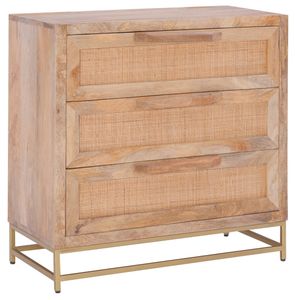 Simple and geometric, this three-drawer cabinet offers versatile function without sacrificing distinctive style. Real cane from rattan creates natural texture while a black or gold metal frame adds a crisp modern line to the base. Blending both elements from a variety of styles, this piece complements any home or office in both form and function.Read More