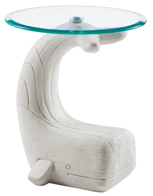 Create a one-of-a-kind look with this sculptural side table, molded from an original artist’s design to mimic the appearance of real carved wood. The rustic finished whale base is both sturdy and eye-catching, topped with a beveled tempered glass surface that’s heat-resistant and shatterproof.Read More