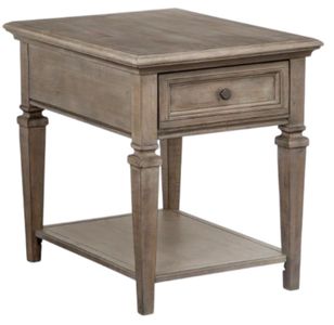 Magnussen® Home end table featuring a dovetail grey finish and weathered bronze hardware.Read More