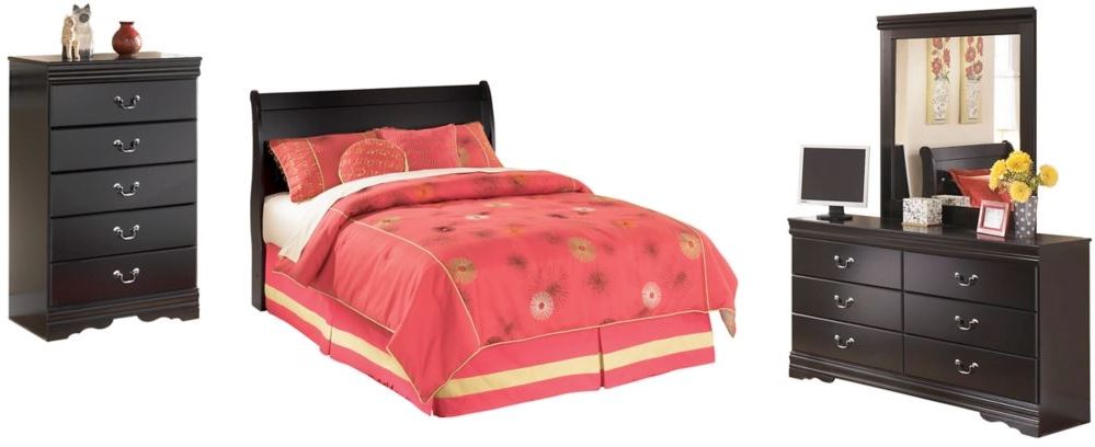 This bedroom set with sleigh headboard, dresser/mirror and chest is the epitome of traditional decor. Louis Philippe-style moulding dates back to the mid-19th century when furnishings were lavish yet somewhat simple. Luxe finish adds a slightly modern touch. Smooth-glide drawers beautifully accommodate your wardrobe.Read More