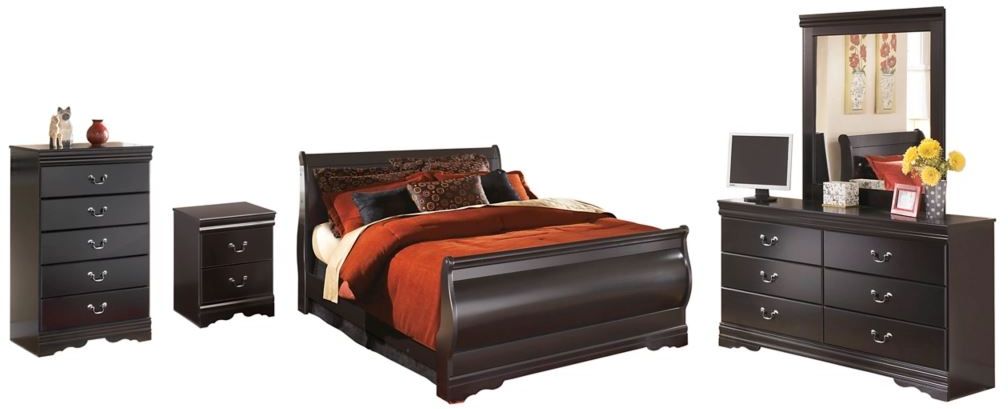The Huey Vineyard bedroom set with sleigh bed, dresser/mirror, chest and nightstand is the epitome of traditional decor. Louis Philippe-style moulding dates back to the mid-19th century when furnishings were lavish yet somewhat simple. Luxe finish adds a slightly modern touch. Smooth-glide drawers beautifully accommodate your wardrobe.Read More
