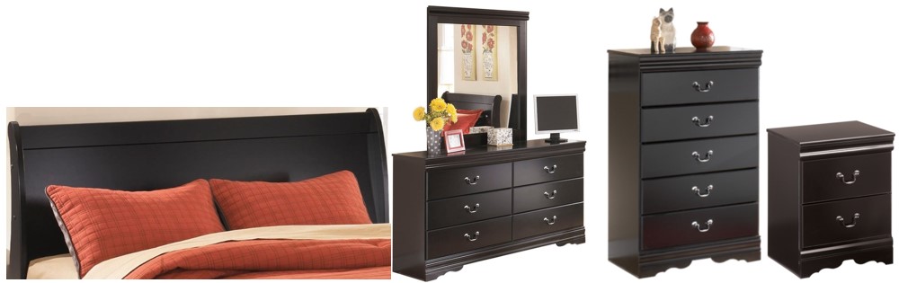 Includes queen sleigh headboard, dresser/mirror, chest and 2 nightstands
